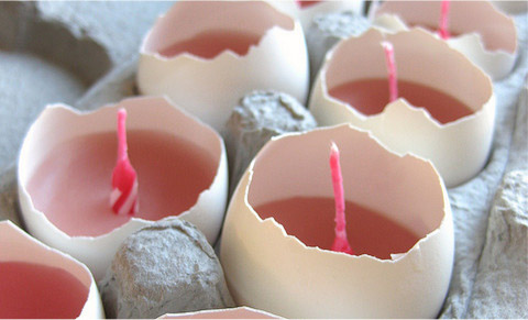 Það getur verið skemmtileg tilbreyting að vera með kerti í eggjaskurn. Það er auðvelt í framkvæmd og hægt að láta hugmyndaflugið ráða. Það sem þarf: Egg, matarlitur, pottur til að bræða vax, og pottur fyrir vatn, kertavax - hægt að kaupa nýtt í föndurbúðum eða bræða gömul kerti, kertalitur og kertaþræðir