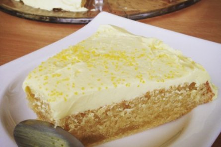 Þegar blandan er orðin köld er smjörinu hrært saman við í nokkrar mínútur eða þar til blandan er farin að líkjast þeyttum rjóma. Hér má bæta við gulum matarlit til að gera kremið aðeins gulara. Skreytið kökuna og skreytið að vild - jafnvel með sítrónuberki.